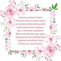 Experience bonair instant freshness with our water-based air freshener. Made with purified water and premium fragrance oils, it eliminates unpleasant Odors and refreshes your space naturally without harsh chemicals or aerosol gases.