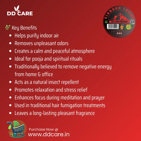 Don’t wait to elevate your senses! Order your SINDOOR Loban - RED LOBAN from DD CARE today and experience the essence of true serenity.